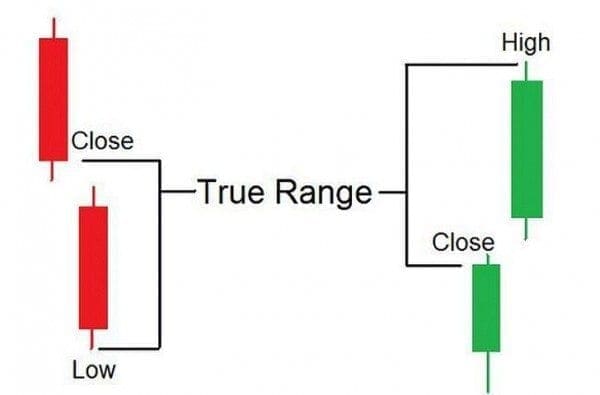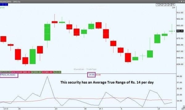 The Average True Range (or ATR), is simply the moving average of the True Range over several periods, (usually 10 or 14). Since you can set your charts for different timeframes, you can observe the Average True Range for any period. The ATR will let you know how much vibration there is in price for the time period you are trading. If you are looking at a five minute chart, the 10 period ATR will show the average price vibration per five minute period, over the last 50 minutes. On a daily chart, the 10 period ATR denotes the daily price vibration over the past two trading weeks (assuming five trading days a week).