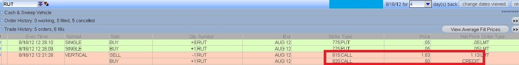 Figure 3 ? RUT 815-820 Vertical Call Credit Spread Sold for $1.13, Thursday Just Before Expiration