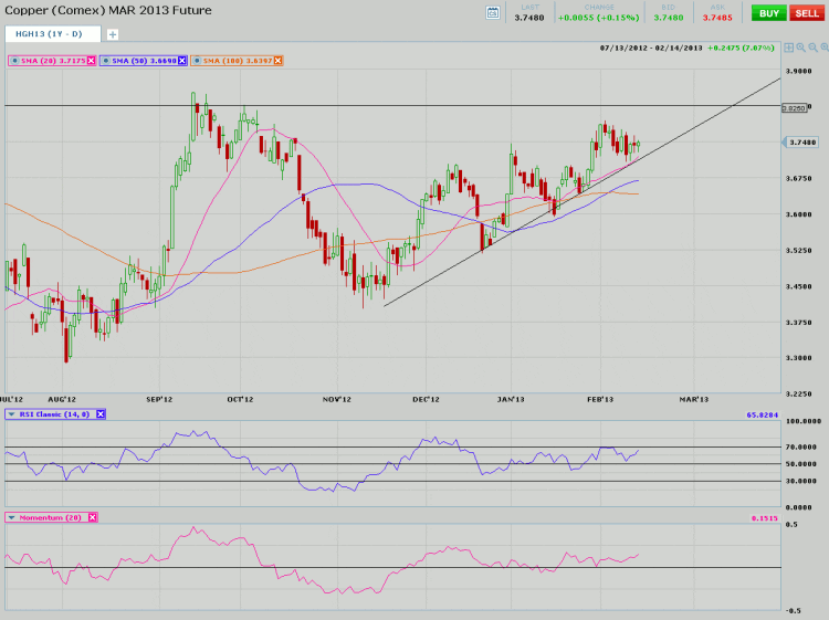 The positive bias in the Copper market has been fueled by expectations of strong Chinese demand. While this had been the dominant force for many traders, the Chinese New Year celebration has given some traders a chance to take in news and data from elsewhere. US retail sales were disappointing yesterday, inching up 0.1%. Given the fact that sales are typically soft following the holiday shopping season, the figure was not expected to be jaw-dropping. The results were in line with estimates, but the anemic number indicates that higher taxes may be curbing spending. In Europe, the Eurozone economy shrank 0.6%, which is the worst result since the depth of the 2008-2009 recession. Shrinking economic growth in Europe and the US may have a negative impact on the Copper market. Economic contraction and higher taxes could detail the housing recovery, which puts the ball in China’s court. Counterbalancing the negative economic news from the industrialized West, Rio Tinto has stated that its Oyu Tolgoi mine in Mongolia will remain closed until the company resolves its issues with the Mongolian government. The government is asking for a greater share of the profits, stating the country has not benefited enough from the mine’s development. The Mongolian government’s ownership interest in the mine is 34%.