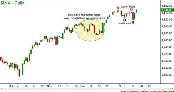 Recently, I Tweeted that the equity markets may be ending their daily bullish trend.? A bullish trend is a series of higher highs and higher lows.? The S&P 500 index recently broke that and made both lower highs and lower lows.