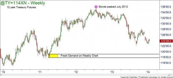 That being said, we do have warning signs from related markets.? In an older article, ?Going Down?? from April 2008, I noted that the peak of the bond market usually precedes the start of a recession by about 27 months.? We peaked in July 2012 and are therefore on track for a recession near November 2014.