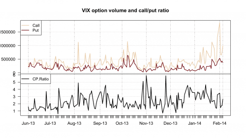 If anything, the interesting story where VIX option activity is concerned is the higher ratio values from late December and through much of January, where on average, 3.3 times as many calls traded as puts (Dec. 18 ? Jan. 21).