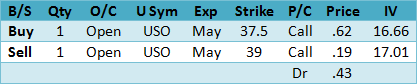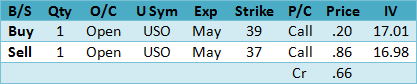The trend, slight volatility and futures rollover edge goes to the bull call spread but it has the double top risk so use a close back below 37 as the?SU?(stop/unwind).