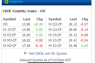 The VIX futures as I write this have come back a bit.? The April premium is about .84 instead of the $2 from the morning, which is a bit more in line.