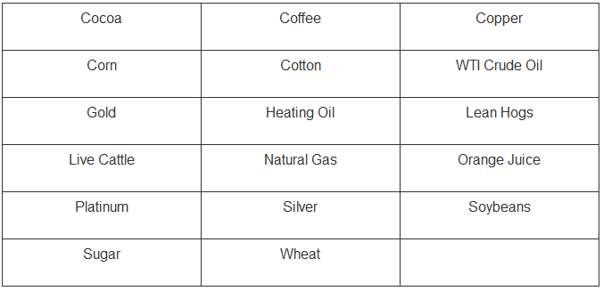 The Commodity markets also have an index we follow to gauge the overall strength or weakness of the Commodity sector.? These indexes are made up of individual Commodity contracts to show us what the broad market is doing.? Just like the S&P 500 is made up of 500 individual stocks these indexes have approximately 17 ? 19 Commodities inside them.