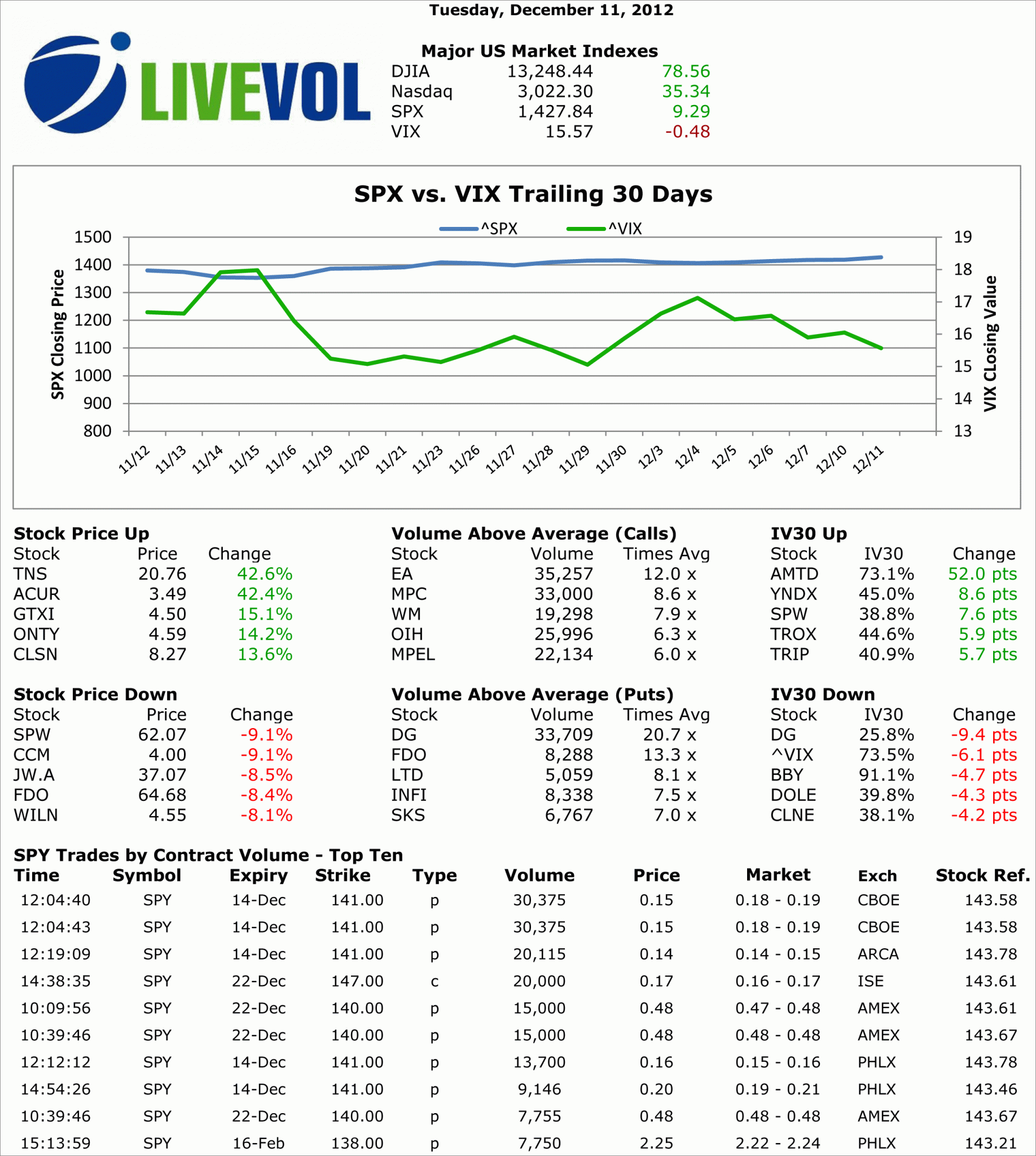 A look at individual issues with interesting pre-market activity for Wednesday, 12/12/12.