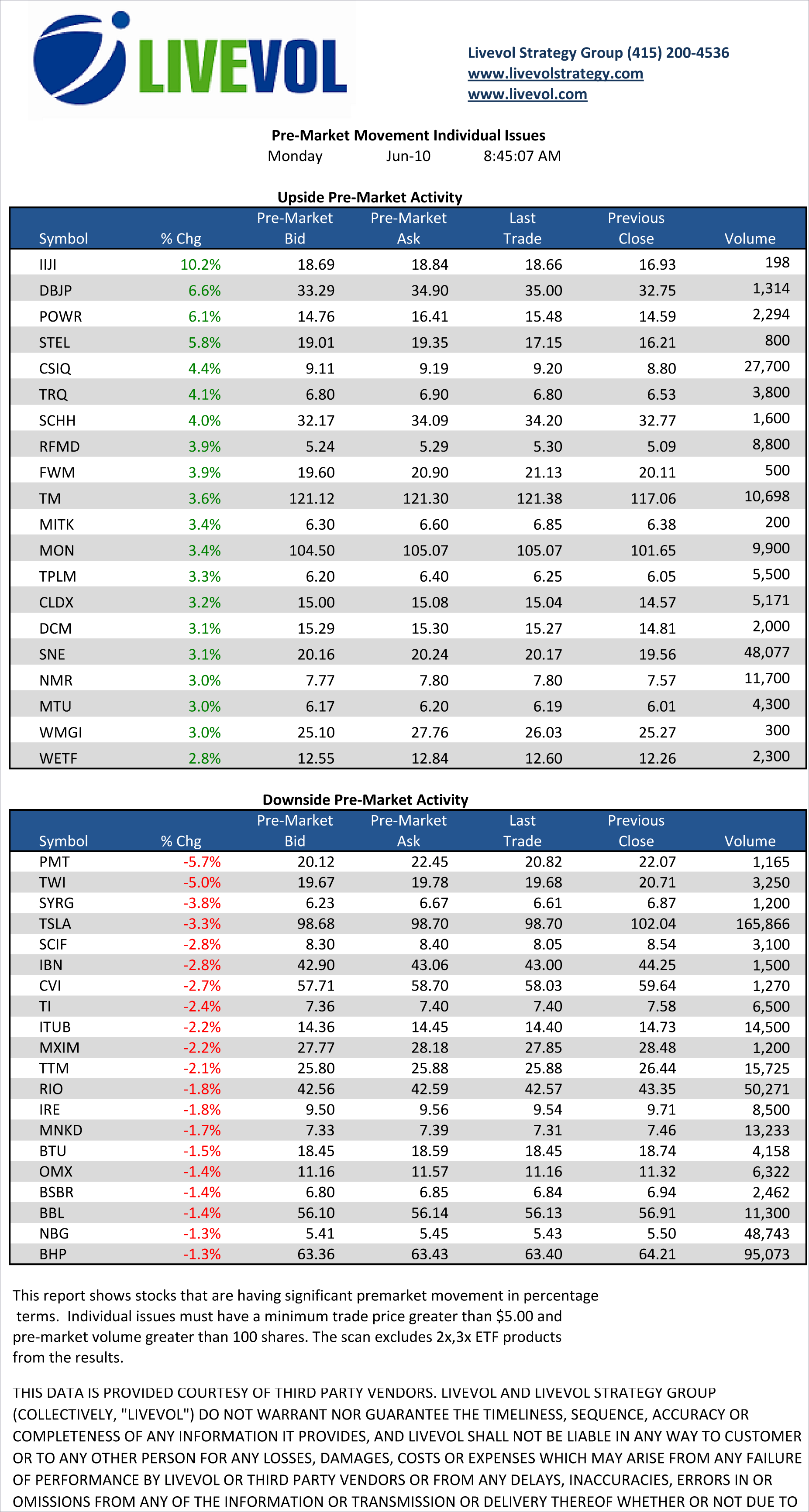 A snapshot of some of the most active names in the pre-market for Monday, June 10