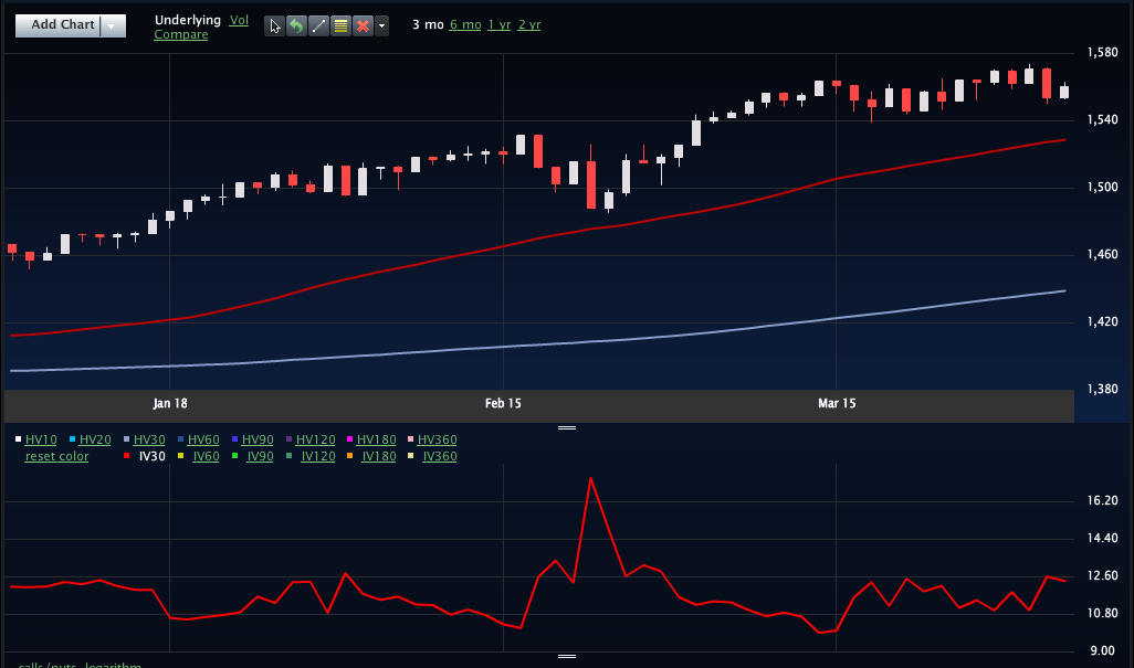 The VIX settled below 14 again yesterday, selling off as the market rallied. ?This after it underperformed Wednesday on the sell-off that briefly sent the market lower than 1550. ?One can see that while the S&P sold off Wednesday and had a small rally yesterday, the VIX has basically spun its wheels.