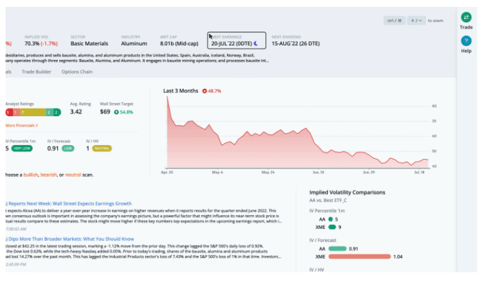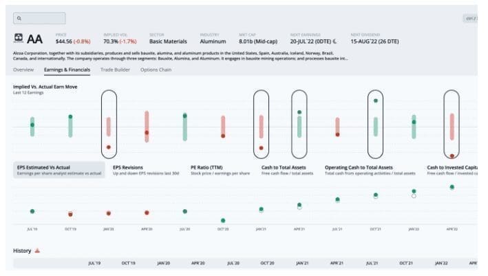Focusing on Alcoa, as we click through, we see this mid-cap company in the aluminum industry reports earnings on Wednesday, July 20th, after the close.