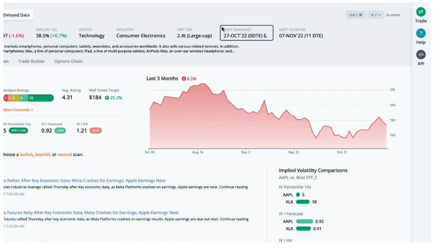 Focusing on Apple, as we click through, we see this large-cap company in the consumer electronics industry reports earnings on Thursday, October 27th, after the close.