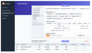 For C, the current PE ratio is 5.2, which is 20.7% under the average for the last twelve earnings observations. Returning to the overview tab, we can quickly run a scan to find the best option trades. Since earnings are right around the corner, we scan for neutral strategies, then filter the scan results by S%, or smoothed edge, by setting it between negative and positive 3%.