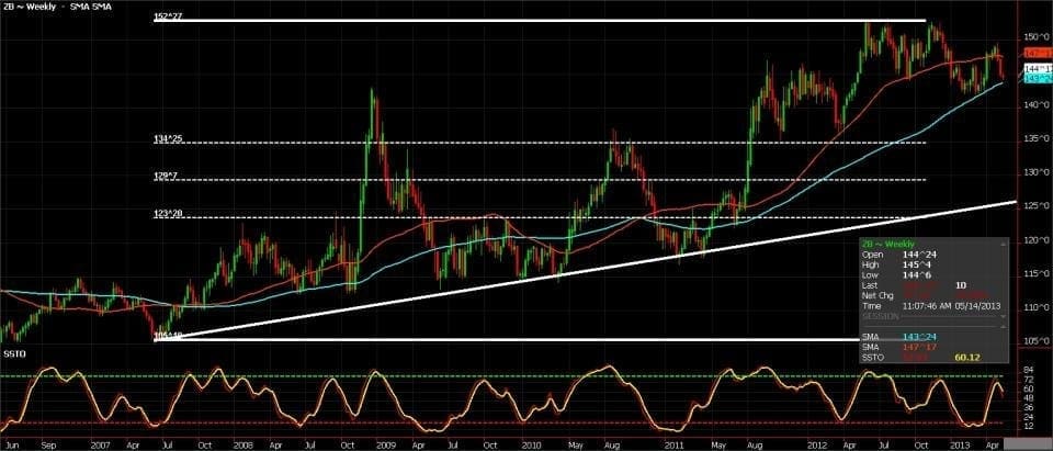 Equities and 30-yr bonds are far from the only two asset classes as investors have several other choices when allocating capital, but I want to touch on these two sectors as their movements should not be ignored when making your investment decisions. It took six years but stocks are back above levels seen in 07? as one can see a pronounced ?V? formation the S&P chart below. Obviously stocks are in favor as retail investors are piling in and the media has bought in as displayed by the covers of recent financial periodicals with further bullish proclamations. Tread lightly as we?ve all seen this movie before. The talk persists of a bubble and conclusion to the mutli-decade bull run in Treasuries. I?m not sure I?ve bought into the bubble aspect but when investors a lot smarter I and with several more zeroes behind their name say ?Treasuries are the worst? place for investors to put money they have my attention. To tie up money for decades and get the current yield makes little to no sense to me.