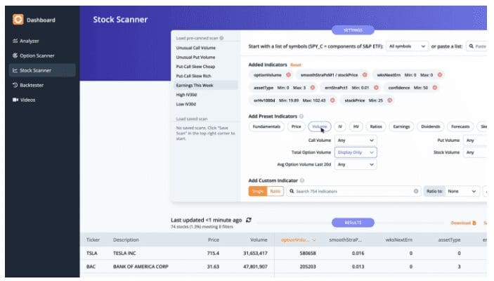 Welcome to the ORATS earnings report where we scan for companies with upcoming earnings announcements, check out historical earnings information, and find a potential options trade.?Read on or watch the video overview here: https://youtu.be/C13NuYVGh50.?Let’s start by running a scan on stocks reporting earnings this week, which includes the total option volume indicator, sorted from greatest to least.