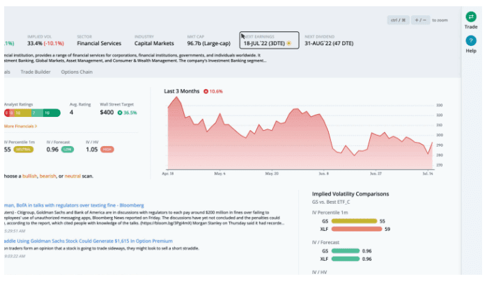 Focusing on Goldman Sachs Group, as we click through, we see this large-cap company in the capital markets industry reports earnings on Monday, July 18th, before the open.