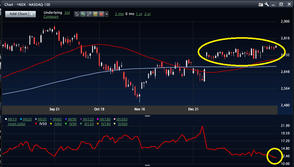 One of the things we concentrate on in our option mentoring is trading indexes. ?There is plenty to be made in the index space, typically on the short premium side. ?In the case of all the indexes IV has been overpriced for so long, ?all the way down to these levels, and continues to be overpriced. ? ?Index IV has been overpriced for going on a year and half and there is no end in sight. ?Perhaps the worst offender is NDX, especially in the past few weeks.