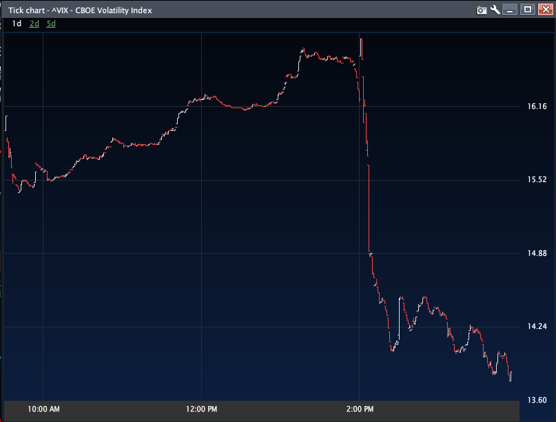 The VIX was in total freefall yesterday.? There was a shiver at the beginning but there is no doubt that volatility lost a significant bid.? After all the talk of VIX being up for so many straight days it is moot now.? SPY closed just pennies from the all-time high and unless there is some sort of extraneous event, we will make new highs this year.