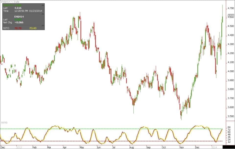 I can attest to the cold weather recently moving to Chicago …coldest winter in decades. Like trading it’s all about timing, and my timing on this move coming from Miami, FL NOT Miami, OH was brutal. For the third ?session in a row an impressive acceleration higher with natural gas prices gaining 13% within that time frame. Futures are currently trading at their highest levels since June 11′. We are within spitting distance of $5 so expect that level to be tested in my opinion. As opposed to jumping in front of this freight rain I think it may make sense to trade a spread as opposed to an outright bearish options or futures play.?