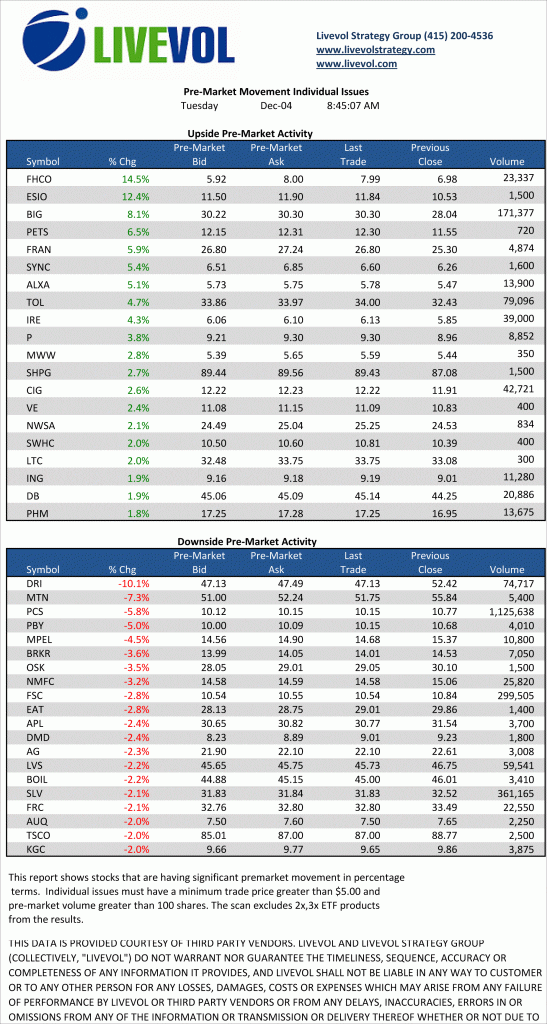 Pre-Market 12/4/12 by Ophir Gottlieb | Dec 4, 2012 | Trading & Analysis A pre-market snapshot for Tuesday, December 4, 2012