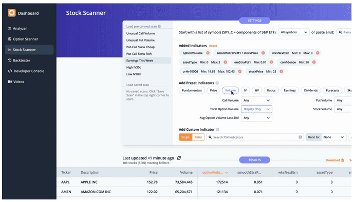 Welcome to the ORATS earnings report where we scan for companies with upcoming earnings announcements, check out historical earnings information, and find a potential options trade.?Read on or watch the video overview here: https://youtu.be/blo6DmUE3Zw.?Let’s start by running a scan on stocks reporting earnings this week, which includes the total option volume indicator, sorted from greatest to least.