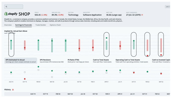 Focusing on Shopify, as we click through, we see this large-cap company in the software-application industry reports earnings on Wednesday, July 27th, before the open.