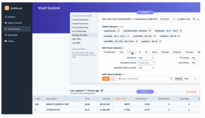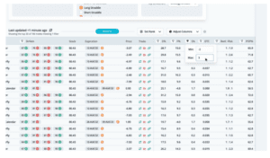 Let’s start by running a scan on stocks reporting earnings this week, which includes the total option volume indicator, sorted from greatest to least.