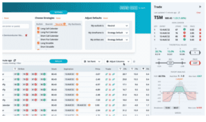 For TSM, the current PE ratio is 17.7, which is 16.5% under the average for the last twelve earnings observations. Returning to the overview tab, we can quickly run a scan to find the best option trades. Since earnings are right around the corner, we scan for neutral strategies, then filter the scan results by S%, or smoothed edge, by setting it between negative and positive 3%.
