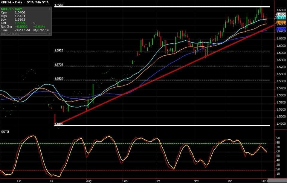 The British Pound was a FX standout in the second half of 13′ appreciating from under $1.50 to close out the year near $1.6600 a gain of 10% in Q3 and Q4. Current trade has March futures approximately .007% below that level.?Where from here??