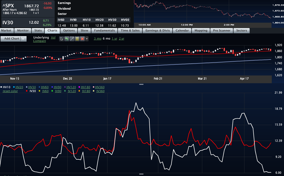 TWTR seemed to drive down most of the social networking stocks and the wave hit banks and other names.? With a near 1% drop in the SPX, the VIX was only up .51 points, which is a little light.? The big reason is that implied volatility has been over priced for a little while.