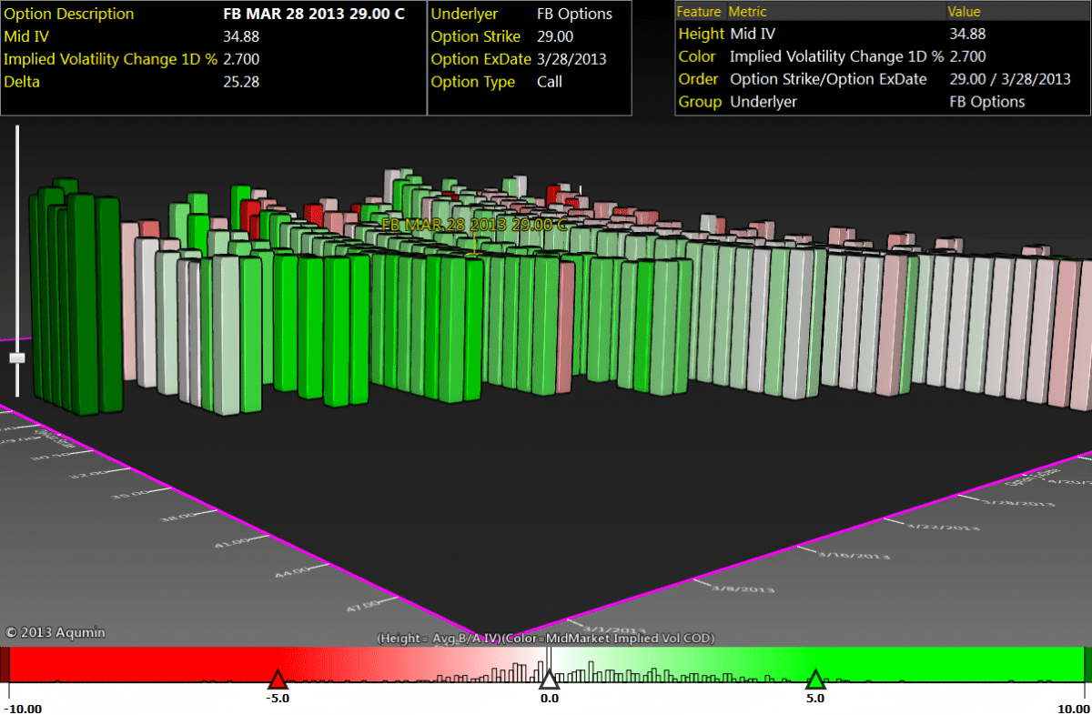 The market had a bit of a reversal on Thursday for what reason I cannot quite figure out.? Maybe politics but the economic news all week has been ok. On Friday, there was the big shrug on the Sequester so maybe the politics will start to seep out of the market. One could hope. One name that took off on the close Thursday was Facebook (FB).? FB spent most of the day in the mid-26 level only to ignite on the close to close 27.25.? It was like all the sellers went home after the whatever deal was announced with MSFT. ?What it left at the end of the day was a really flat term structure.