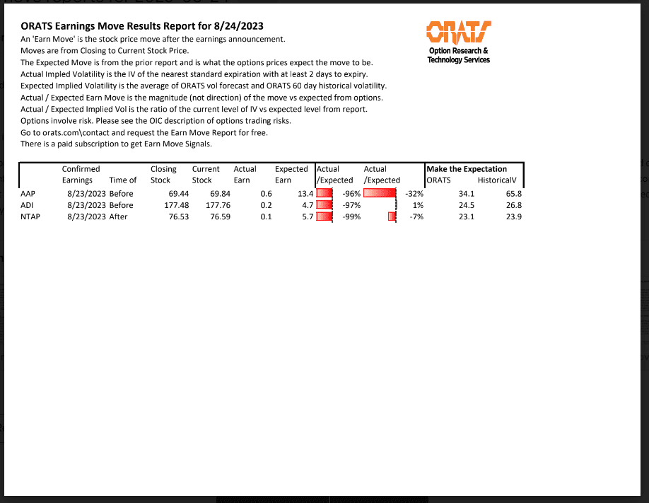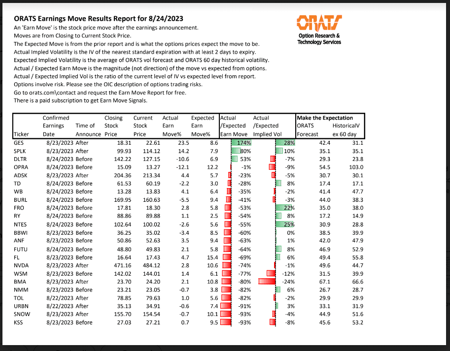 Information available on ORATS.com is available to all subscribers. ORATS does not make recommendations as to particular securities or derivative instruments, and does not advocate the purchase or sale of any security or investment by you or any other individual. ORATS does not guarantee the accuracy, completeness or timeliness of the Information. By using the Services of ORATS.com, including any applications or content available through us, you agree that use of the Services is entirely at your own risk. You understand and acknowledge that there is a very high degree of risk involved in trading options and securities. Past results are not indicative of future returns that may be realized by you. We assume no responsibility or liability for your trading and investment results.