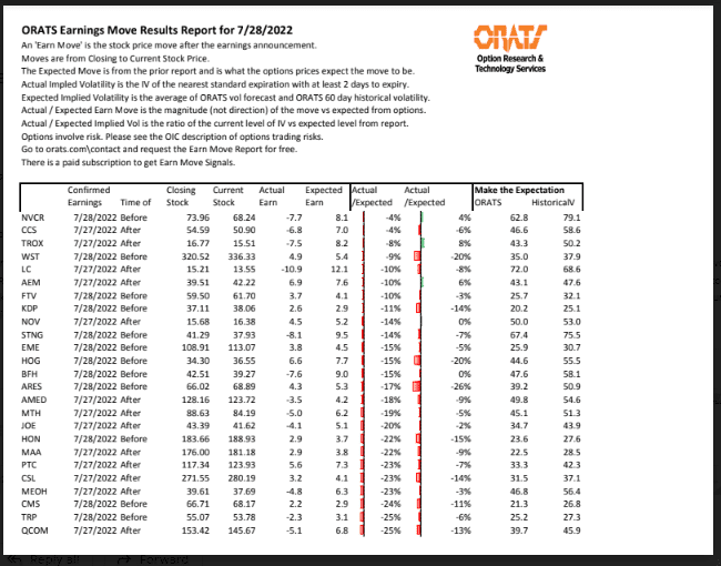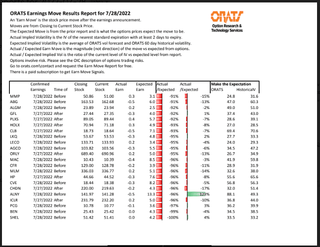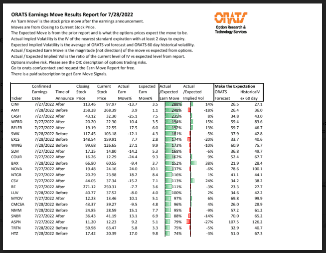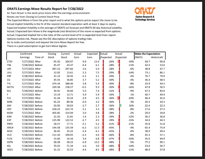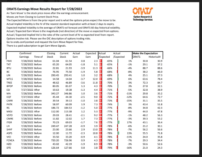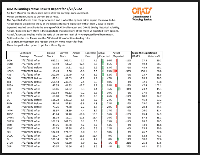 Information available on ORATS.com is available to all subscribers. ORATS does not make recommendations as to particular securities or derivative instruments, and does not advocate the purchase or sale of any security or investment by you or any other individual. ORATS does not guarantee the accuracy, completeness or timeliness of the Information. By using the Services of ORATS.com, including any applications or content available through us, you agree that use of the Services is entirely at your own risk. You understand and acknowledge that there is a very high degree of risk involved in trading options and securities. Past results are not indicative of future returns that may be realized by you. We assume no responsibility or liability for your trading and investment results.