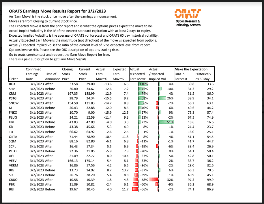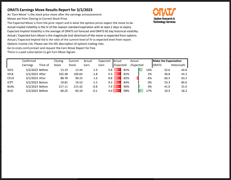 Information available on ORATS.com is available to all subscribers. ORATS does not make recommendations as to particular securities or derivative instruments, and does not advocate the purchase or sale of any security or investment by you or any other individual. ORATS does not guarantee the accuracy, completeness or timeliness of the Information. By using the Services of ORATS.com, including any applications or content available through us, you agree that use of the Services is entirely at your own risk. You understand and acknowledge that there is a very high degree of risk involved in trading options and securities. Past results are not indicative of future returns that may be realized by you. We assume no responsibility or liability for your trading and investment results.
