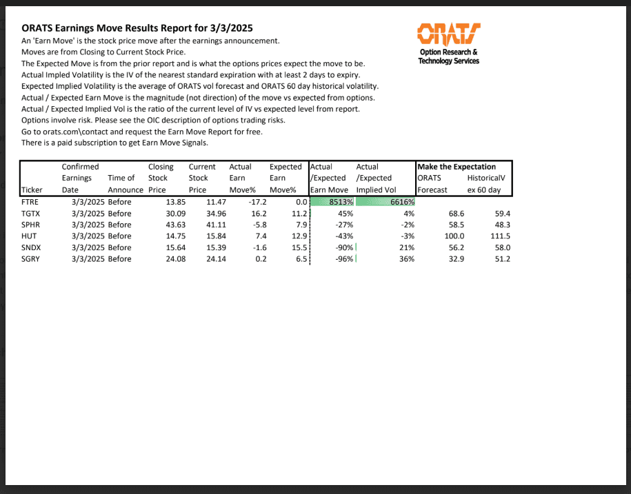 Information available on ORATS.com is available to all subscribers. ORATS does not make recommendations as to particular securities or derivative instruments, and does not advocate the purchase or sale of any security or investment by you or any other individual. ORATS does not guarantee the accuracy, completeness or timeliness of the Information. By using the Services of ORATS.com, including any applications or content available through us, you agree that use of the Services is entirely at your own risk. You understand and acknowledge that there is a very high degree of risk involved in trading options and securities. Past results are not indicative of future returns that may be realized by you. We assume no responsibility or liability for your trading and investment results.