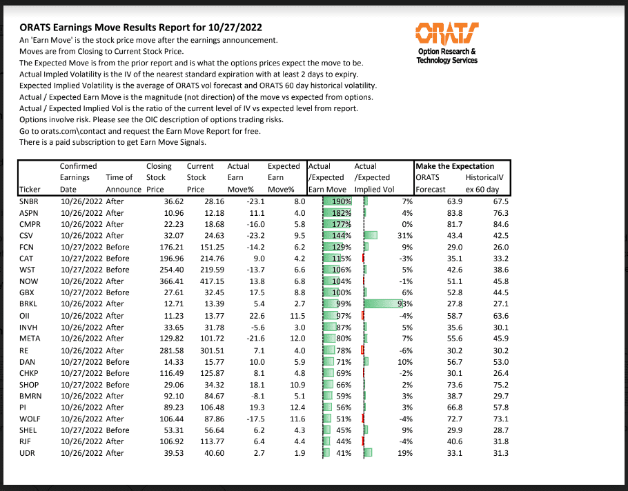 Information available on ORATS.com is available to all subscribers. ORATS does not make recommendations as to particular securities or derivative instruments, and does not advocate the purchase or sale of any security or investment by you or any other individual. ORATS does not guarantee the accuracy, completeness or timeliness of the Information. By using the Services of ORATS.com, including any applications or content available through us, you agree that use of the Services is entirely at your own risk. You understand and acknowledge that there is a very high degree of risk involved in trading options and securities. Past results are not indicative of future returns that may be realized by you. We assume no responsibility or liability for your trading and investment results.
