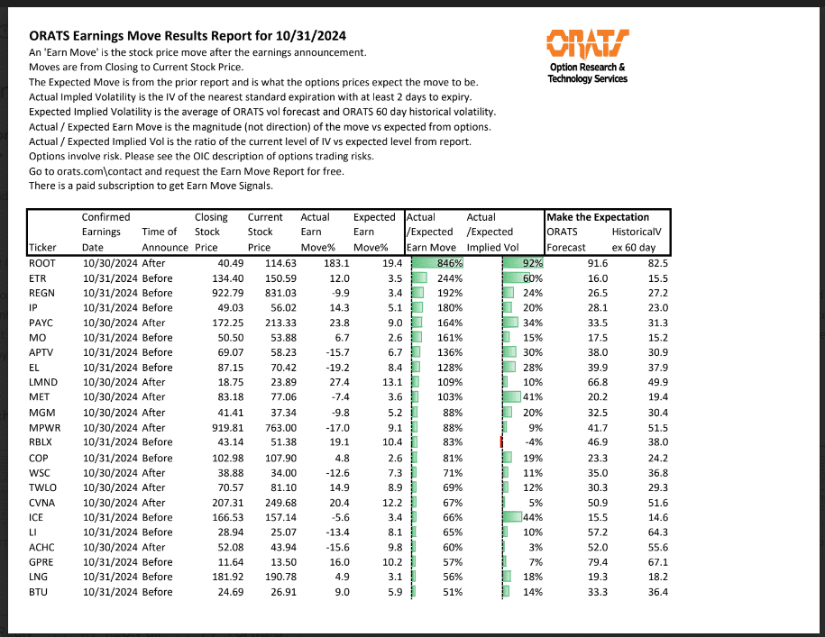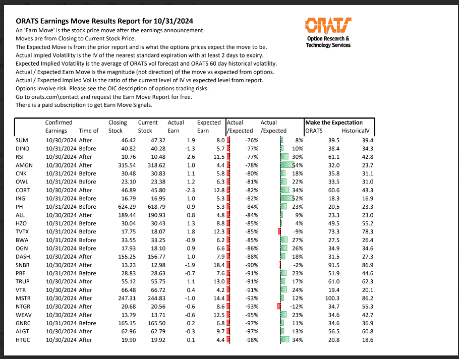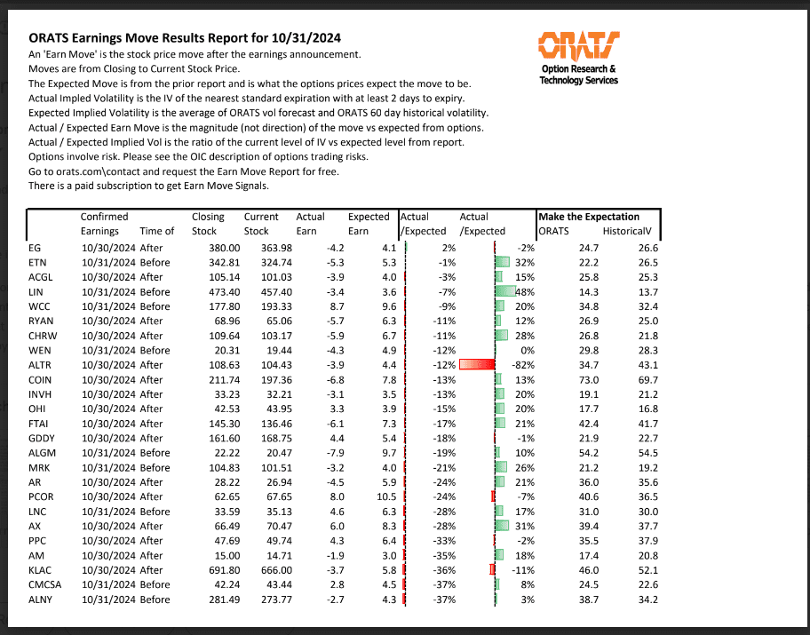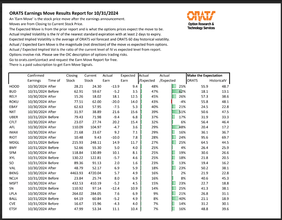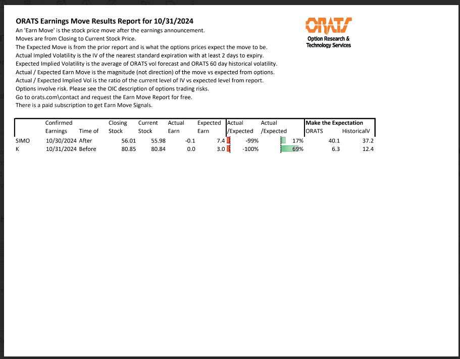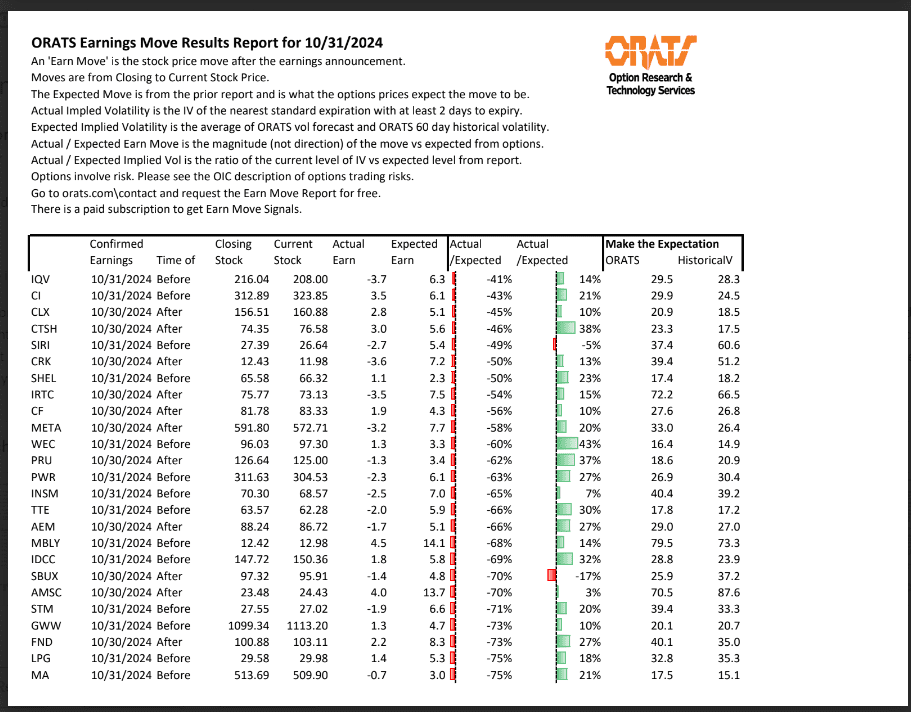 Information available on ORATS.com is available to all subscribers. ORATS does not make recommendations as to particular securities or derivative instruments, and does not advocate the purchase or sale of any security or investment by you or any other individual. ORATS does not guarantee the accuracy, completeness or timeliness of the Information. By using the Services of ORATS.com, including any applications or content available through us, you agree that use of the Services is entirely at your own risk. You understand and acknowledge that there is a very high degree of risk involved in trading options and securities. Past results are not indicative of future returns that may be realized by you. We assume no responsibility or liability for your trading and investment results.