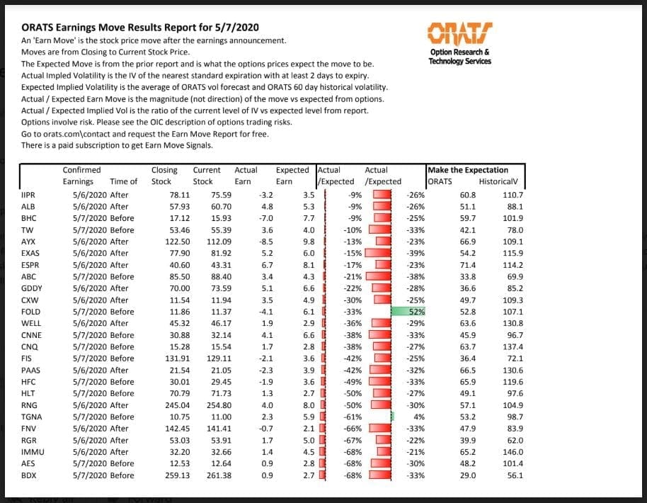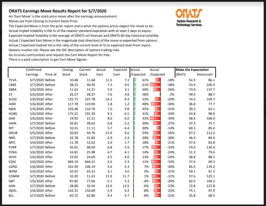 Information available on ORATS.com is available to all subscribers. ORATS does not make recommendations as to particular securities or derivative instruments, and does not advocate the purchase or sale of any security or investment by you or any other individual. ORATS does not guarantee the accuracy, completeness or timeliness of the Information. By using the Services of ORATS.com, including any applications or content available through us, you agree that use of the Services is entirely at your own risk. You understand and acknowledge that there is a very high degree of risk involved in trading options and securities. Past results are not indicative of future returns that may be realized by you. We assume no responsibility or liability for your trading and investment results.
