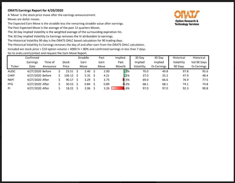 Information available on ORATS.com is available to all subscribers. ORATS does not make recommendations as to particular securities or derivative instruments, and does not advocate the purchase or sale of any security or investment by you or any other individual. ORATS does not guarantee the accuracy, completeness or timeliness of the Information. By using the Services of ORATS.com, including any applications or content available through us, you agree that use of the Services is entirely at your own risk. You understand and acknowledge that there is a very high degree of risk involved in trading options and securities. Past results are not indicative of future returns that may be realized by you. We assume no responsibility or liability for your trading and investment results.