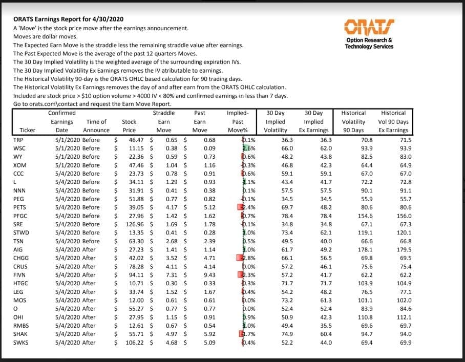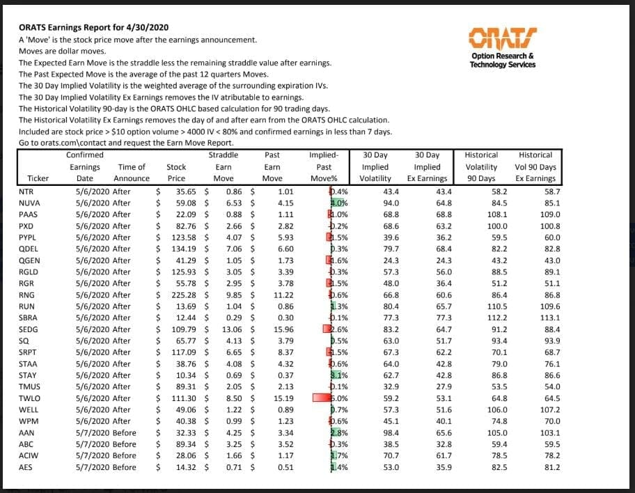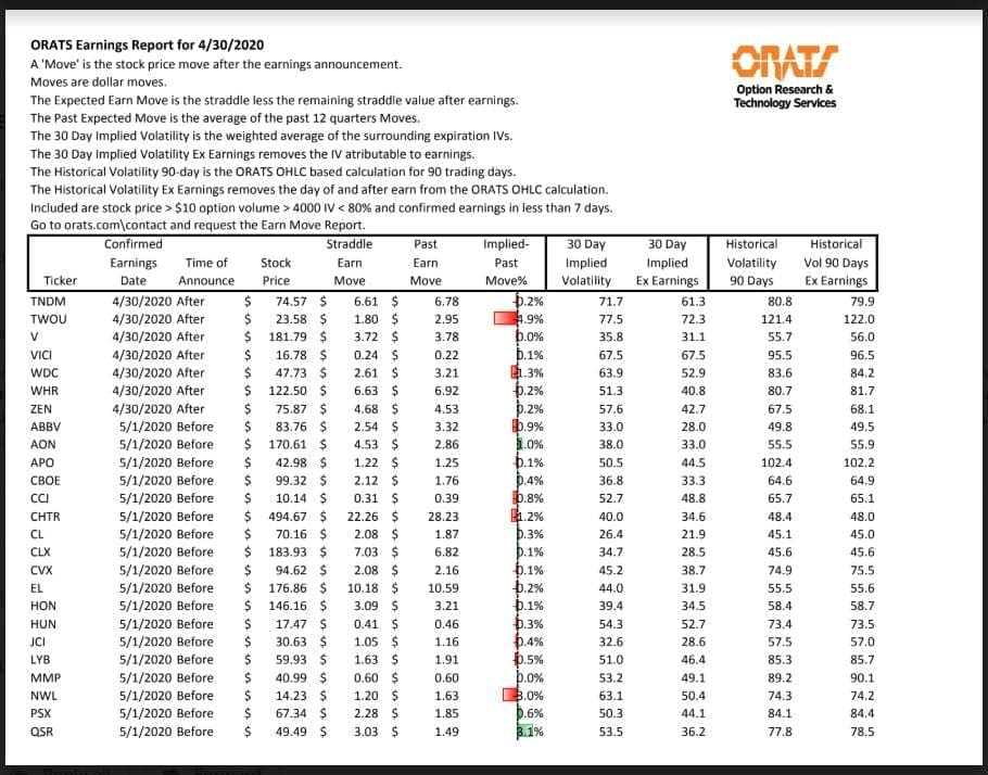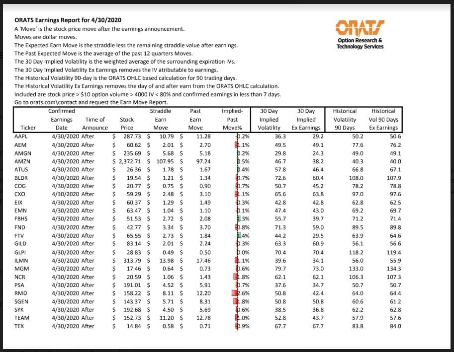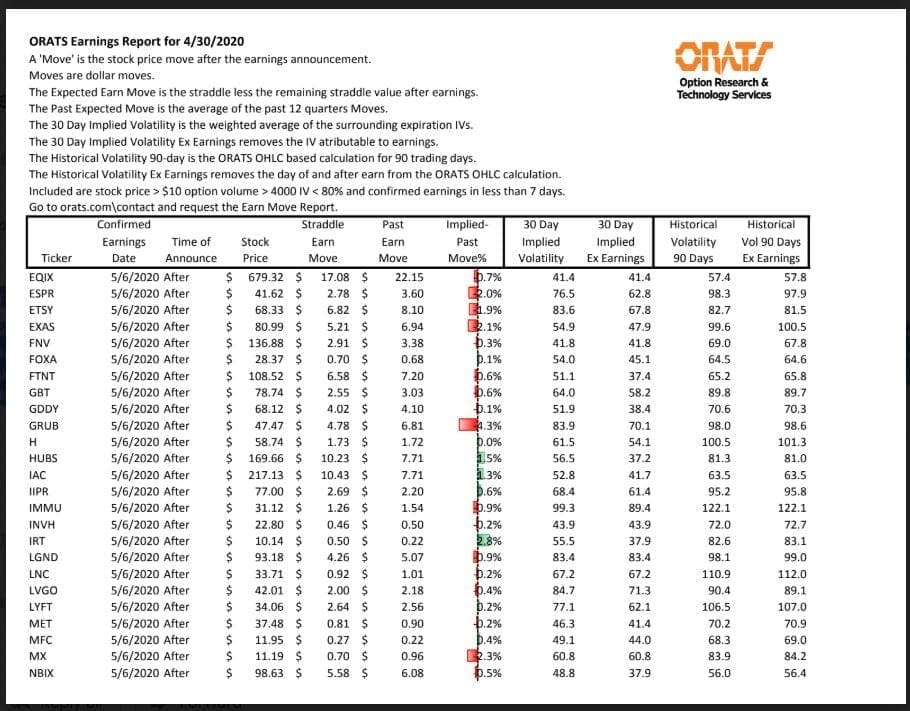 Information available on ORATS.com is available to all subscribers. ORATS does not make recommendations as to particular securities or derivative instruments, and does not advocate the purchase or sale of any security or investment by you or any other individual. ORATS does not guarantee the accuracy, completeness or timeliness of the Information. By using the Services of ORATS.com, including any applications or content available through us, you agree that use of the Services is entirely at your own risk. You understand and acknowledge that there is a very high degree of risk involved in trading options and securities. Past results are not indicative of future returns that may be realized by you. We assume no responsibility or liability for your trading and investment results.
