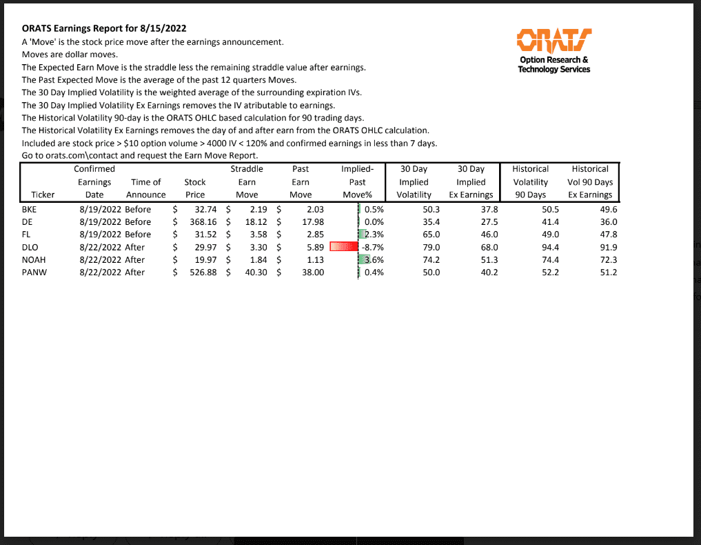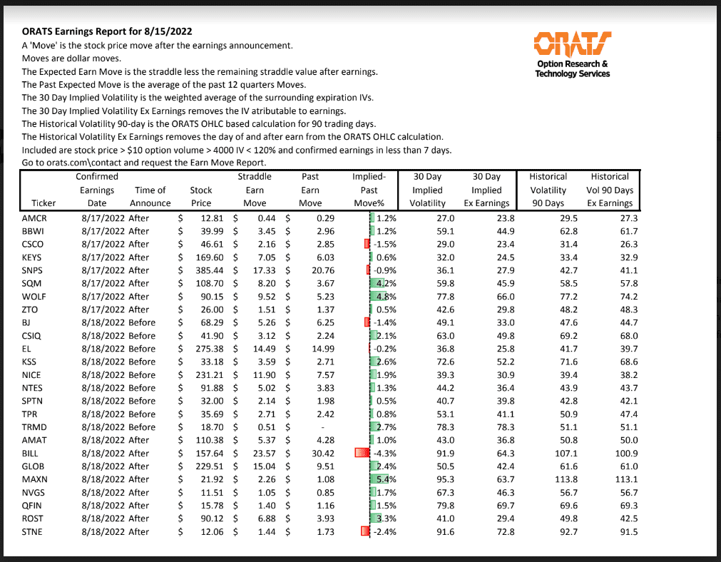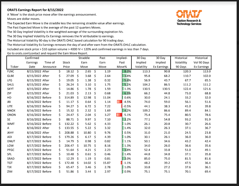 Information available on ORATS.com is available to all subscribers. ORATS does not make recommendations as to particular securities or derivative instruments, and does not advocate the purchase or sale of any security or investment by you or any other individual. ORATS does not guarantee the accuracy, completeness or timeliness of the Information. By using the Services of ORATS.com, including any applications or content available through us, you agree that use of the Services is entirely at your own risk. You understand and acknowledge that there is a very high degree of risk involved in trading options and securities. Past results are not indicative of future returns that may be realized by you. We assume no responsibility or liability for your trading and investment results.