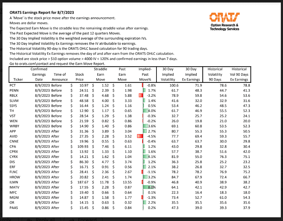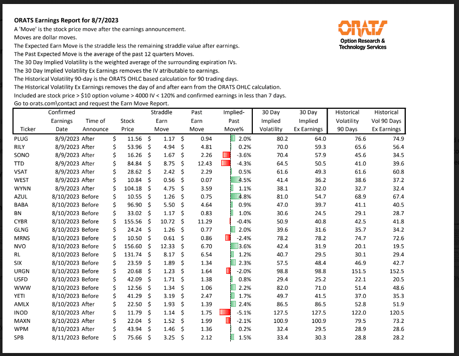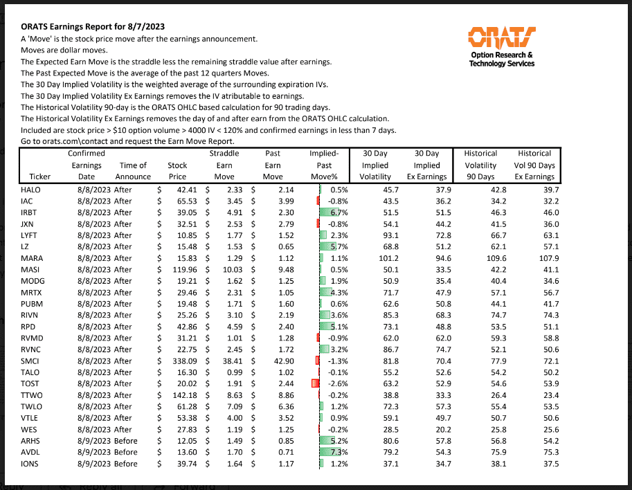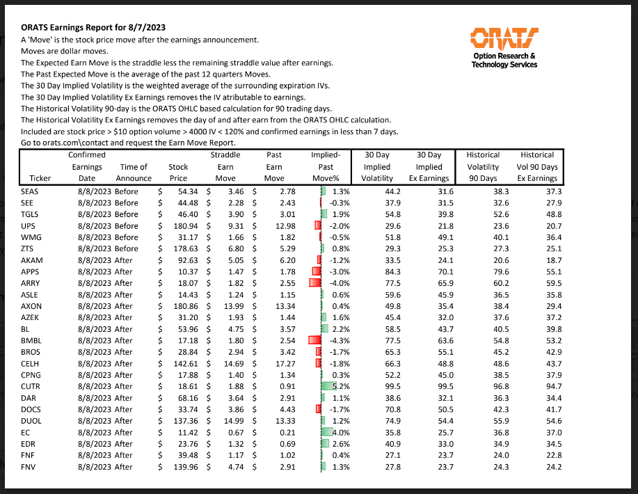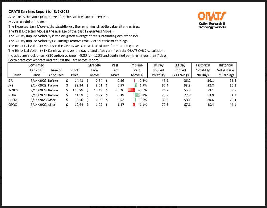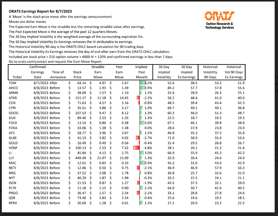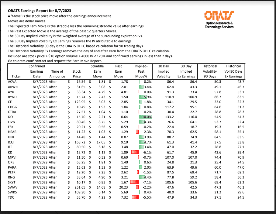 Information available on ORATS.com is available to all subscribers. ORATS does not make recommendations as to particular securities or derivative instruments, and does not advocate the purchase or sale of any security or investment by you or any other individual. ORATS does not guarantee the accuracy, completeness or timeliness of the Information. By using the Services of ORATS.com, including any applications or content available through us, you agree that use of the Services is entirely at your own risk. You understand and acknowledge that there is a very high degree of risk involved in trading options and securities. Past results are not indicative of future returns that may be realized by you. We assume no responsibility or liability for your trading and investment results.