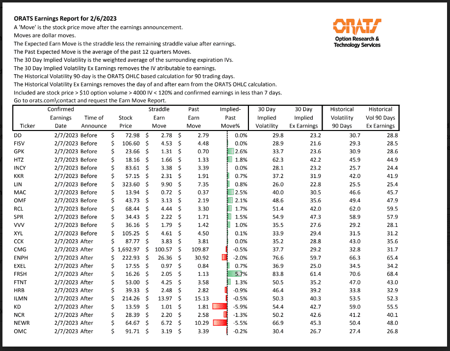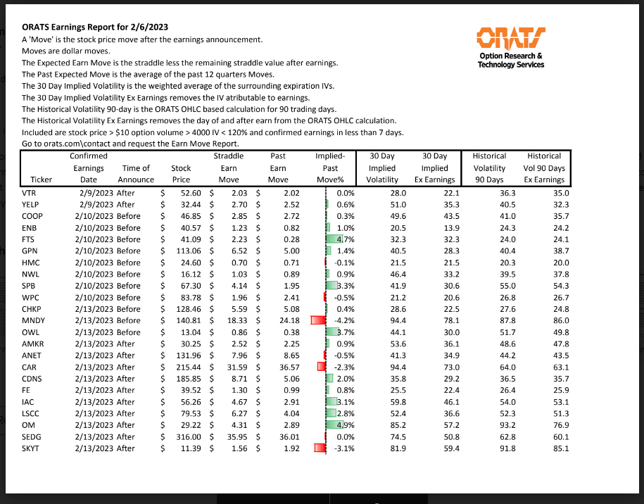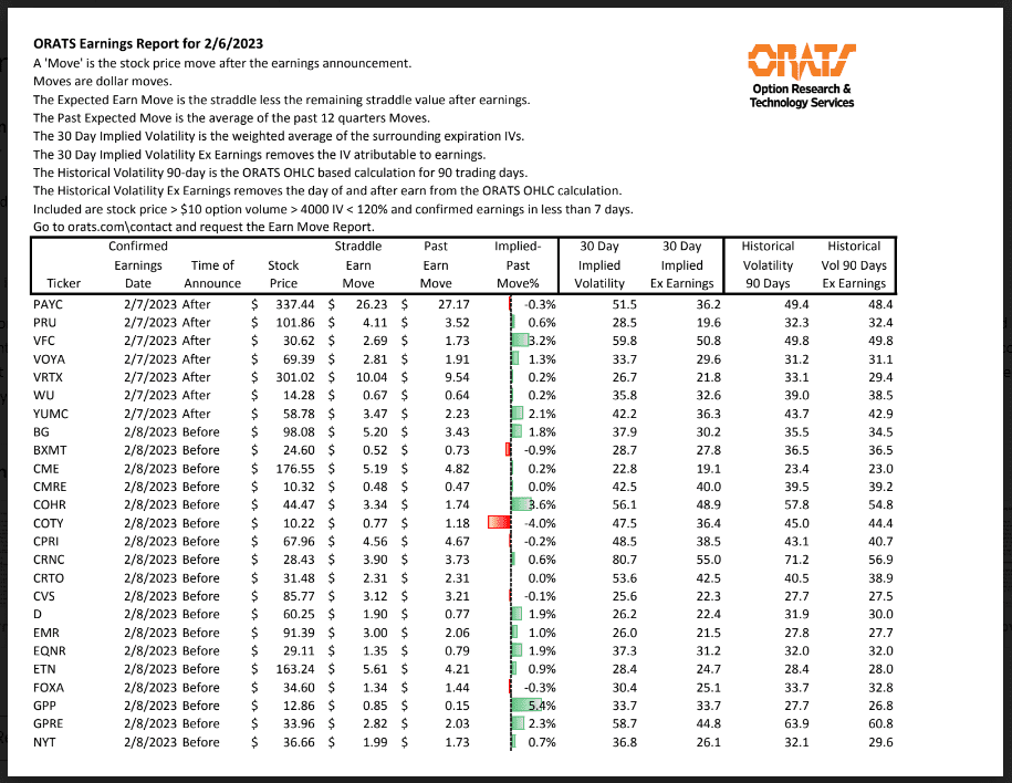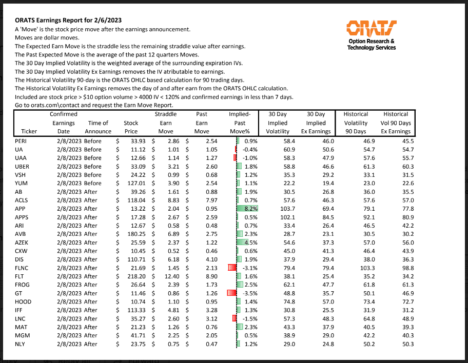 Information available on ORATS.com is available to all subscribers. ORATS does not make recommendations as to particular securities or derivative instruments, and does not advocate the purchase or sale of any security or investment by you or any other individual. ORATS does not guarantee the accuracy, completeness or timeliness of the Information. By using the Services of ORATS.com, including any applications or content available through us, you agree that use of the Services is entirely at your own risk. You understand and acknowledge that there is a very high degree of risk involved in trading options and securities. Past results are not indicative of future returns that may be realized by you. We assume no responsibility or liability for your trading and investment results.