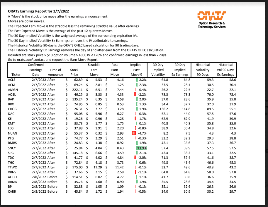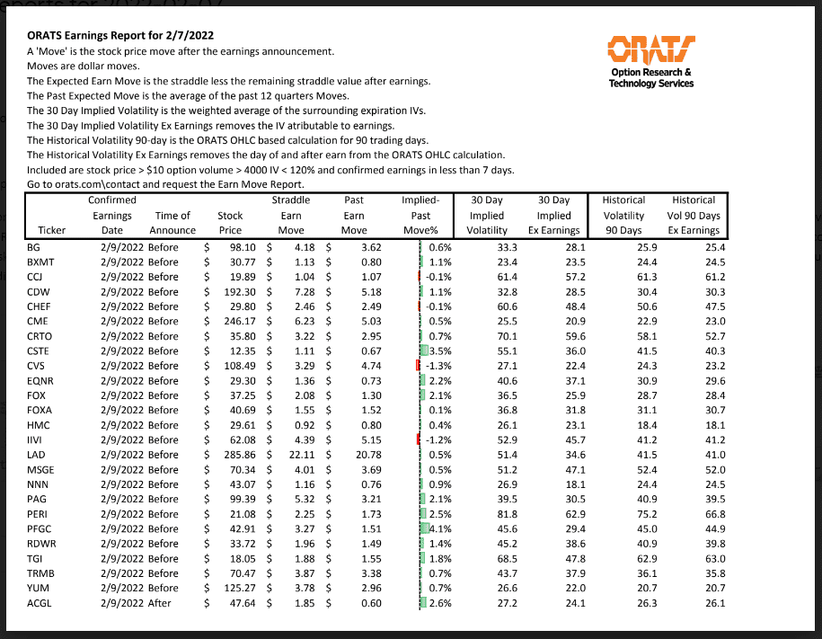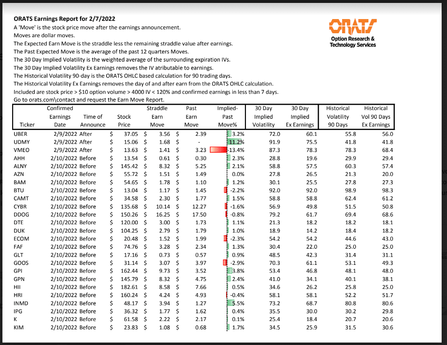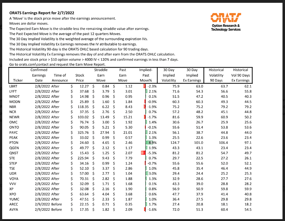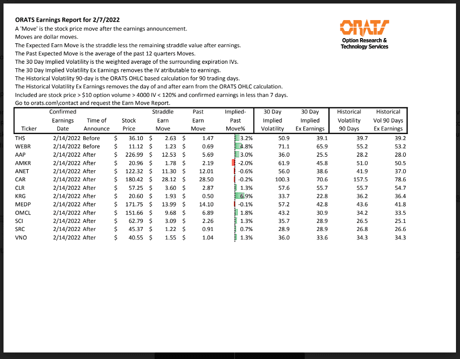Information available on ORATS.com is available to all subscribers. ORATS does not make recommendations as to particular securities or derivative instruments, and does not advocate the purchase or sale of any security or investment by you or any other individual. ORATS does not guarantee the accuracy, completeness or timeliness of the Information. By using the Services of ORATS.com, including any applications or content available through us, you agree that use of the Services is entirely at your own risk. You understand and acknowledge that there is a very high degree of risk involved in trading options and securities. Past results are not indicative of future returns that may be realized by you. We assume no responsibility or liability for your trading and investment results.