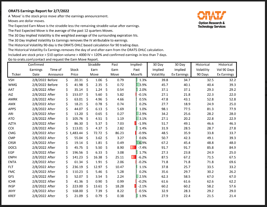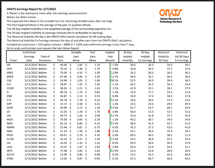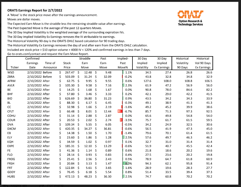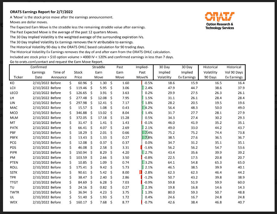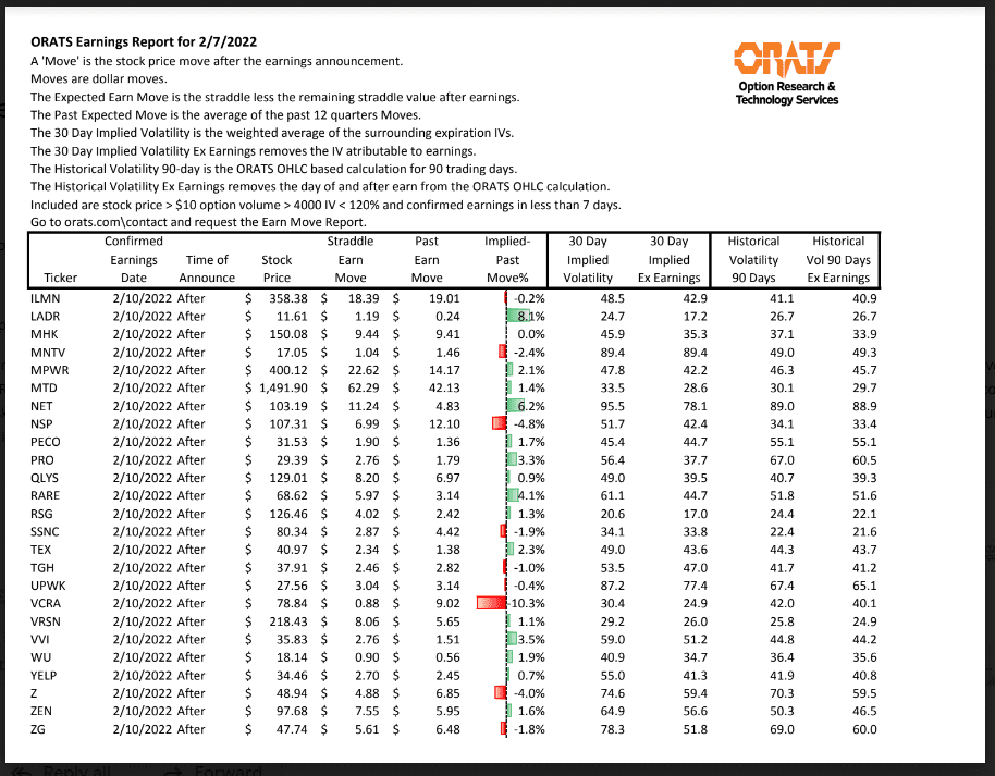 Information available on ORATS.com is available to all subscribers. ORATS does not make recommendations as to particular securities or derivative instruments, and does not advocate the purchase or sale of any security or investment by you or any other individual. ORATS does not guarantee the accuracy, completeness or timeliness of the Information. By using the Services of ORATS.com, including any applications or content available through us, you agree that use of the Services is entirely at your own risk. You understand and acknowledge that there is a very high degree of risk involved in trading options and securities. Past results are not indicative of future returns that may be realized by you. We assume no responsibility or liability for your trading and investment results.