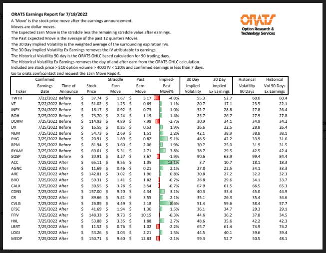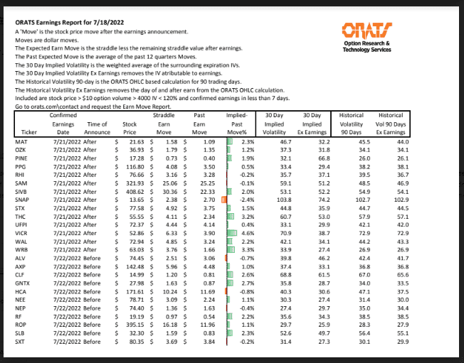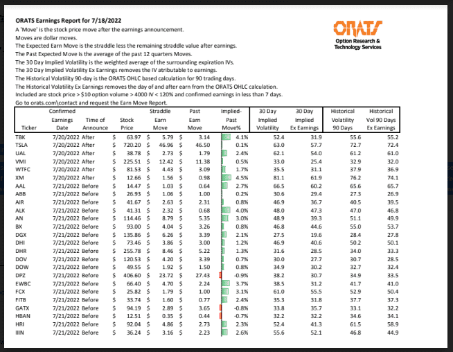 Information available on ORATS.com is available to all subscribers. ORATS does not make recommendations as to particular securities or derivative instruments, and does not advocate the purchase or sale of any security or investment by you or any other individual. ORATS does not guarantee the accuracy, completeness or timeliness of the Information. By using the Services of ORATS.com, including any applications or content available through us, you agree that use of the Services is entirely at your own risk. You understand and acknowledge that there is a very high degree of risk involved in trading options and securities. Past results are not indicative of future returns that may be realized by you. We assume no responsibility or liability for your trading and investment results.