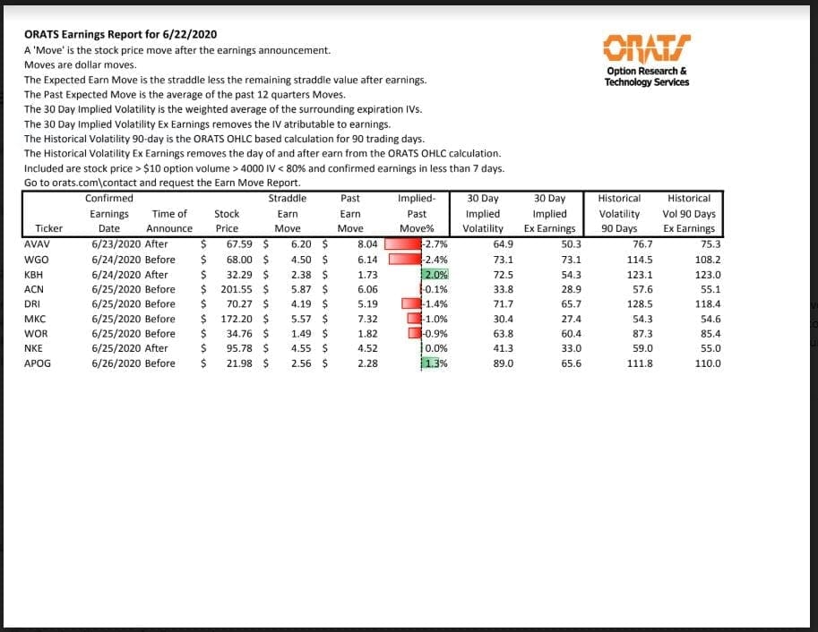 Information available on ORATS.com is available to all subscribers. ORATS does not make recommendations as to particular securities or derivative instruments, and does not advocate the purchase or sale of any security or investment by you or any other individual. ORATS does not guarantee the accuracy, completeness or timeliness of the Information. By using the Services of ORATS.com, including any applications or content available through us, you agree that use of the Services is entirely at your own risk. You understand and acknowledge that there is a very high degree of risk involved in trading options and securities. Past results are not indicative of future returns that may be realized by you. We assume no responsibility or liability for your trading and investment results.