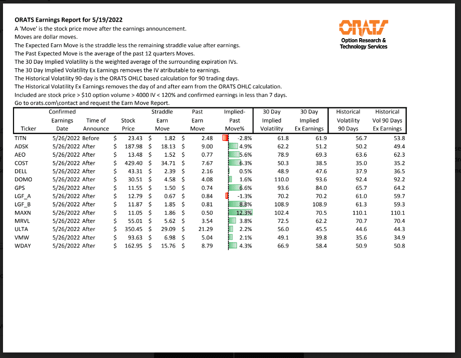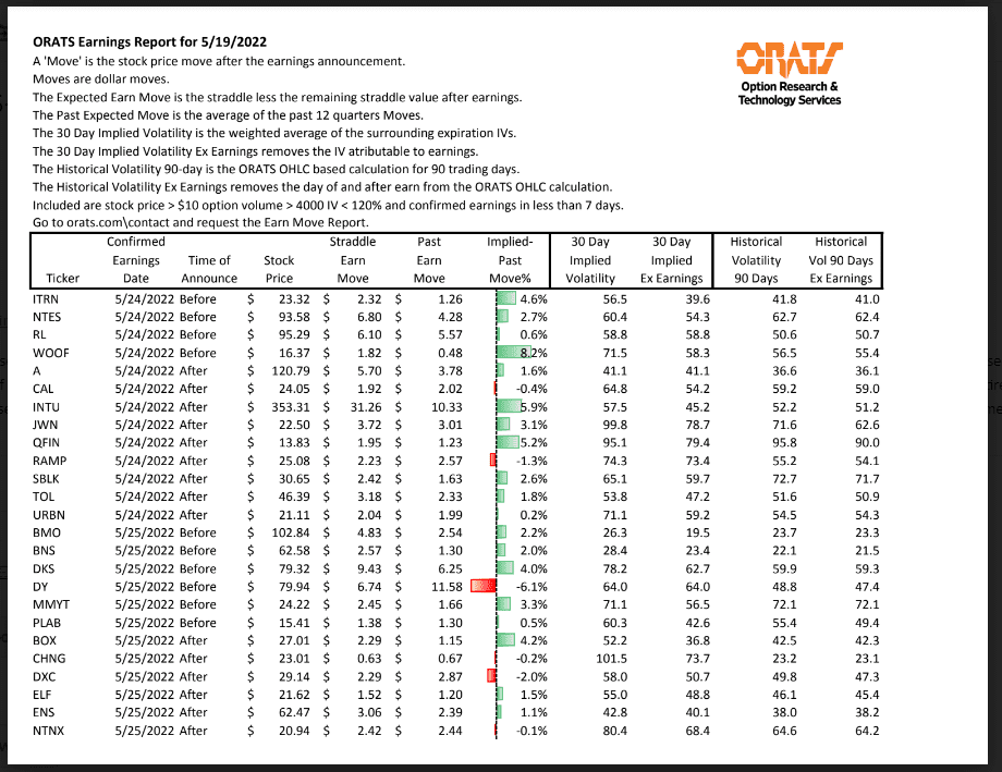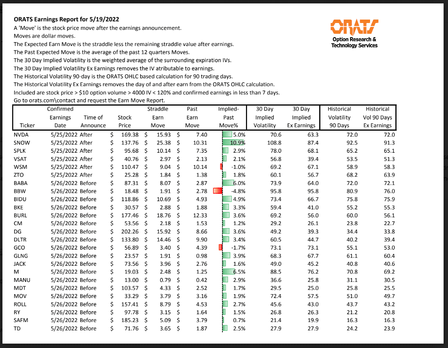 Information available on ORATS.com is available to all subscribers. ORATS does not make recommendations as to particular securities or derivative instruments, and does not advocate the purchase or sale of any security or investment by you or any other individual. ORATS does not guarantee the accuracy, completeness or timeliness of the Information. By using the Services of ORATS.com, including any applications or content available through us, you agree that use of the Services is entirely at your own risk. You understand and acknowledge that there is a very high degree of risk involved in trading options and securities. Past results are not indicative of future returns that may be realized by you. We assume no responsibility or liability for your trading and investment results.