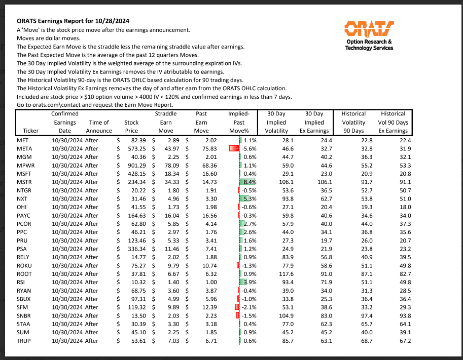 Information available on ORATS.com is available to all subscribers. ORATS does not make recommendations as to particular securities or derivative instruments, and does not advocate the purchase or sale of any security or investment by you or any other individual. ORATS does not guarantee the accuracy, completeness or timeliness of the Information. By using the Services of ORATS.com, including any applications or content available through us, you agree that use of the Services is entirely at your own risk. You understand and acknowledge that there is a very high degree of risk involved in trading options and securities. Past results are not indicative of future returns that may be realized by you. We assume no responsibility or liability for your trading and investment results.