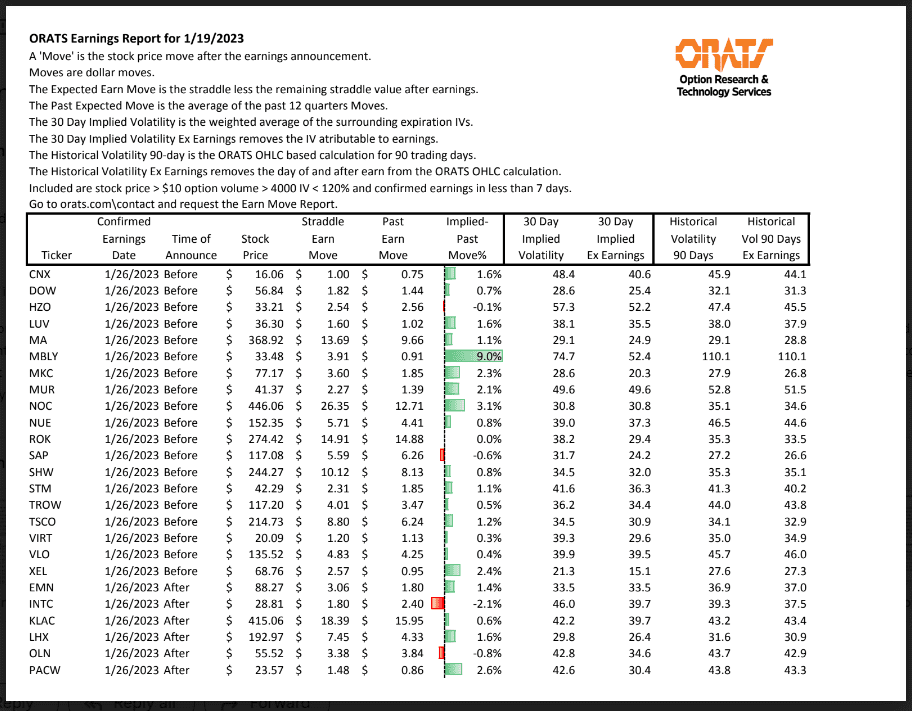 Information available on ORATS.com is available to all subscribers. ORATS does not make recommendations as to particular securities or derivative instruments, and does not advocate the purchase or sale of any security or investment by you or any other individual. ORATS does not guarantee the accuracy, completeness or timeliness of the Information. By using the Services of ORATS.com, including any applications or content available through us, you agree that use of the Services is entirely at your own risk. You understand and acknowledge that there is a very high degree of risk involved in trading options and securities. Past results are not indicative of future returns that may be realized by you. We assume no responsibility or liability for your trading and investment results.