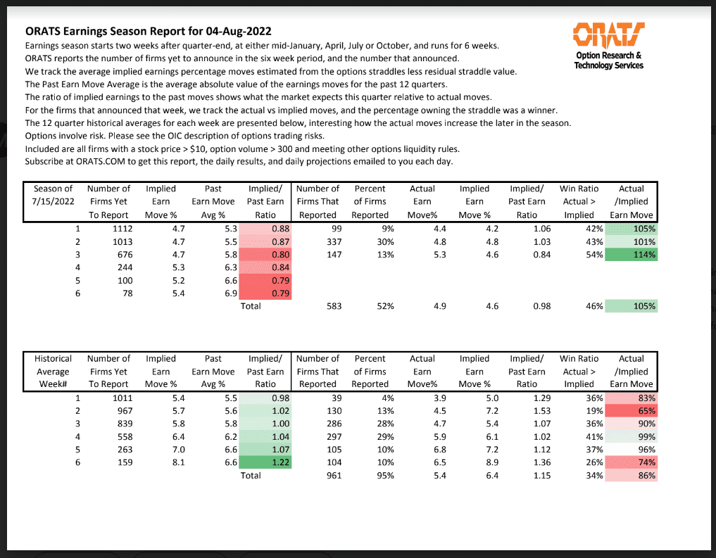 Information available on ORATS.com is available to all subscribers. ORATS does not make recommendations as to particular securities or derivative instruments, and does not advocate the purchase or sale of any security or investment by you or any other individual. ORATS does not guarantee the accuracy, completeness or timeliness of the Information. By using the Services of ORATS.com, including any applications or content available through us, you agree that use of the Services is entirely at your own risk. You understand and acknowledge that there is a very high degree of risk involved in trading options and securities. Past results are not indicative of future returns that may be realized by you. We assume no responsibility or liability for your trading and investment results.