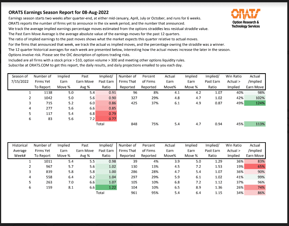 Information available on ORATS.com is available to all subscribers. ORATS does not make recommendations as to particular securities or derivative instruments, and does not advocate the purchase or sale of any security or investment by you or any other individual. ORATS does not guarantee the accuracy, completeness or timeliness of the Information. By using the Services of ORATS.com, including any applications or content available through us, you agree that use of the Services is entirely at your own risk. You understand and acknowledge that there is a very high degree of risk involved in trading options and securities. Past results are not indicative of future returns that may be realized by you. We assume no responsibility or liability for your trading and investment results.